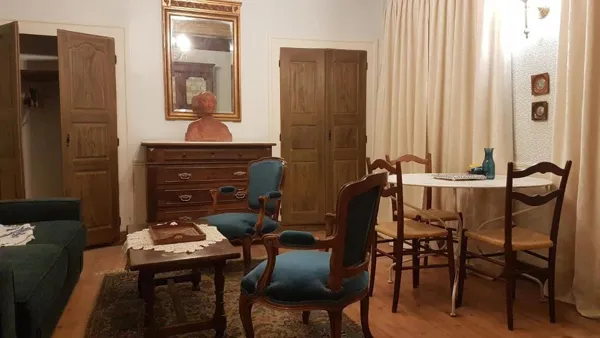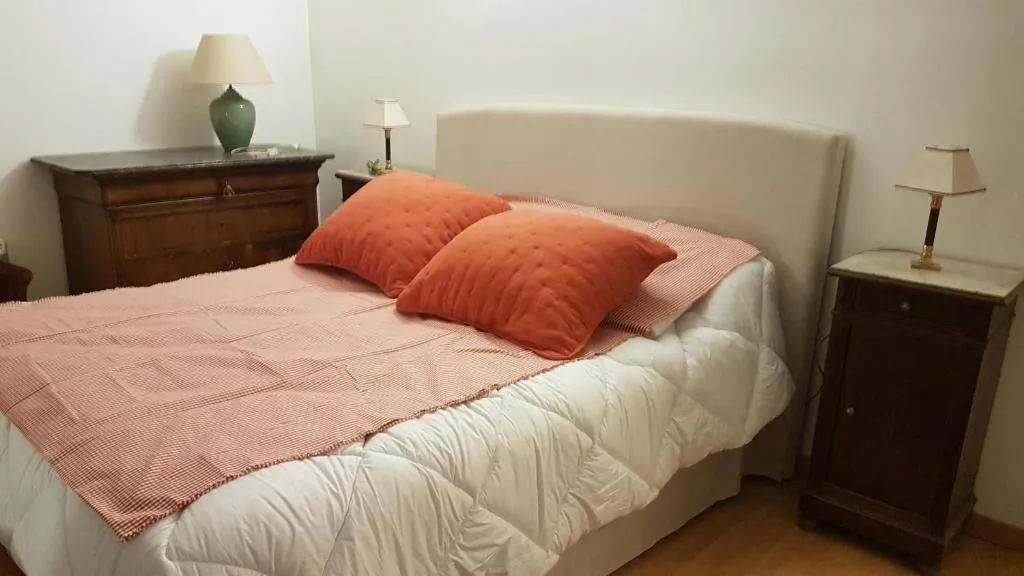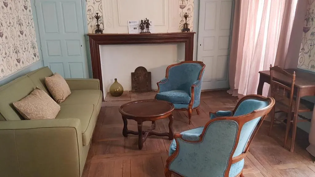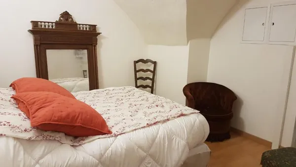 Il y a à l’entresol un appartement loué en gîte qui dispose de tout l’équipement nécessaire pour y vivre en autonomie (cuisine équipée, lave-vaisselle et lave-linge). Il comprend deux chambres, un grand salon, une belle cuisine. Il a la particularité d’être entièrement voûté sans être bas de plafond.